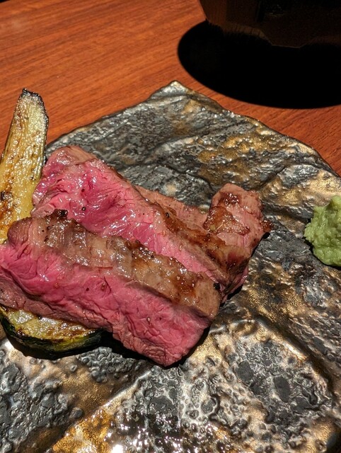 ランチタイムで奥の個室にて5000円のコースをいただきました。序盤プラチナユッケ(ビジュアルもいいですがとっても美味しい)から始まり、厚切りの熟成タン(歯ごたえと旨みがすごい)、肉寿司(間違いないやつです)、ハラミステーキ(柔らかさが素晴らしい)からチョイ盛りの牛タンカレー(おかわりが欲しくなる旨さ)。