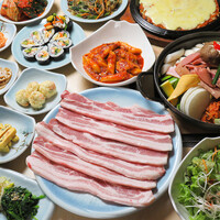 大人気のサムギョプサルのほか、鍋やチヂミも食べられる満足コース。2時間飲み放題もついて4,700円(税抜)!!赤坂での宴会は是非、松林で。