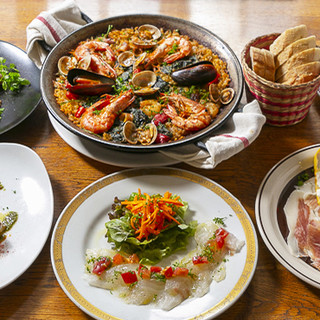 スペイン語で食堂を意味する"タベルナ"。文字通り、当店ではスペイン料理を気軽にお楽しみいただけます。スペインの代表的な料理であるパエリアをはじめ、アヒージョなどのタパスも充実。お飲物はワインやシェリー酒を豊富にご用意しております。コースは2時間飲み放題付きの6300円コースが人気です。滞在制限時間がなく、ゆっくりできます。貸切は10名様以上または金額に応じて対応します。お気軽にご相談ください。