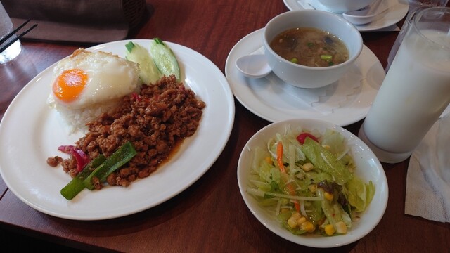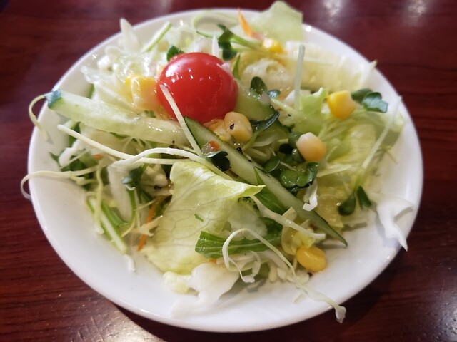 サラダ・ラッシー(他の飲み物にも変更可)・スープがセット内料金に入ってるのありがたい。