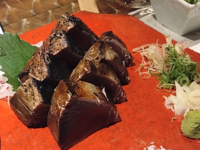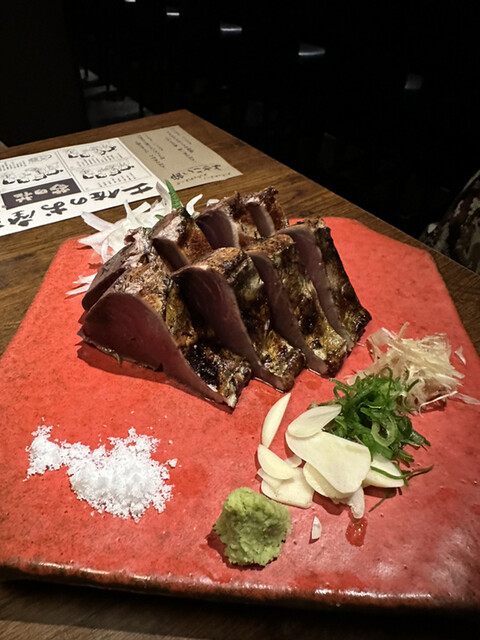 会社帰りにおいしいお店があるよ!とオススメされて同僚と行ってきました。 19時過ぎの赤坂は、仕事帰りの一杯を求める人でどのお店もいっぱい。 念の為、電話で確認したら空きがあるとのことで、急いで向かいました。 直前にお店に入った方は、満席で断られていたのでギリギリ間に合ったようです。 エスプラナード赤坂通りにある外観も良い雰囲気のお店です。 店内に入ると、ちょうど藁焼きをしていて豪快な... 詳細を見る