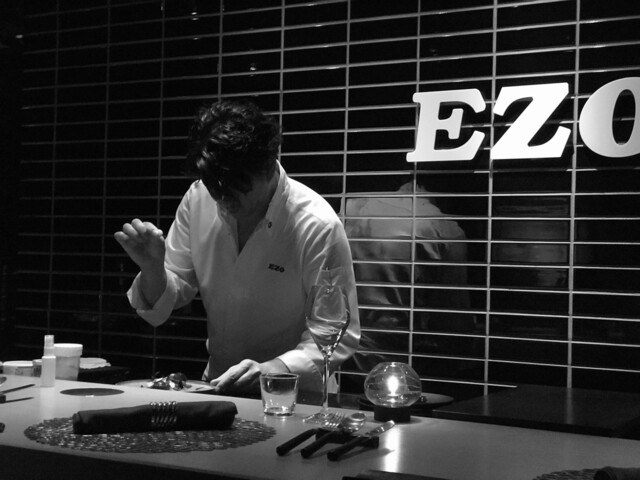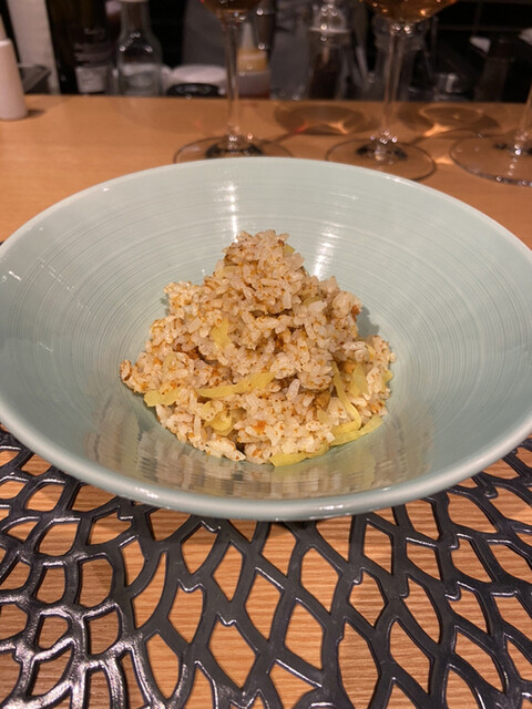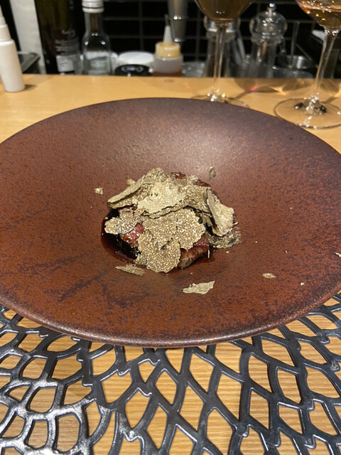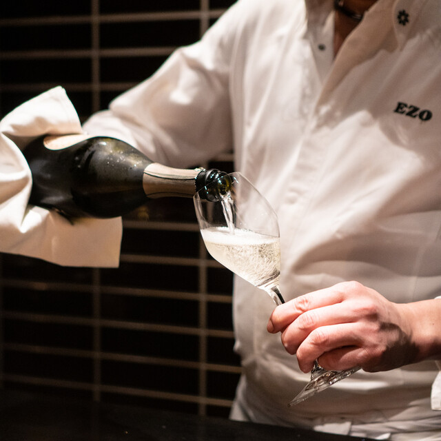 カウンターでワイン片手にシェフの料理説明や手捌きを見ながら