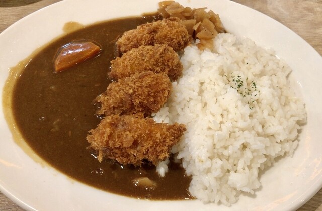 ランチメニューの基本は3つのみ。黒毛和牛牛すじカレー700円、牡蠣フライカレー90...