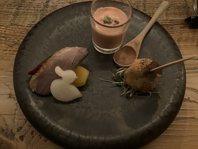 夜に予約して訪問。 7,000円のコースを注文しました。 コース内容は前菜からデザートまでしっかり構成されていて、どの料理も丁寧に作られていて美味しかったです。 特に印象に残ったのは「最上鴨すき焼き」。柔らかいモモ肉が絶品で、脂の甘みと旨みがしっかり感じられました。しかも店員さんが絶妙な火... 詳細を見る