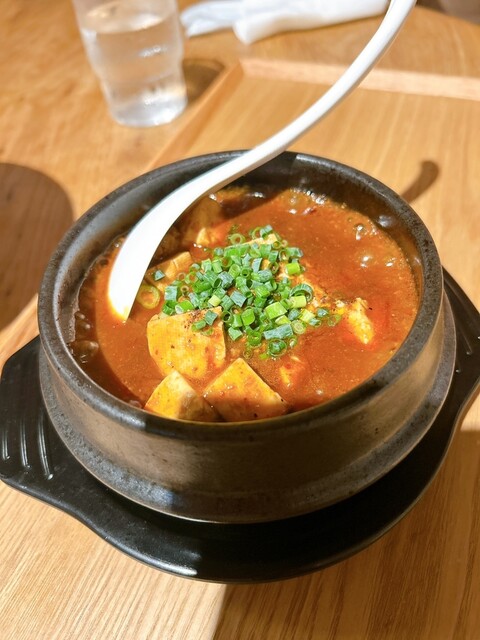 麻婆豆腐も気になったので追加注文。熱々で少し痺れがあり...