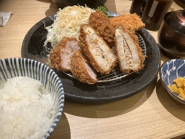 「ひれかつ、レンコン挟み揚げ、メンチカツ、カニ入りクリームコロッケ」のセットを頂いた。