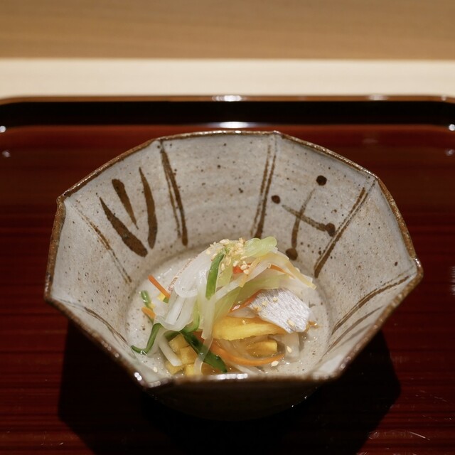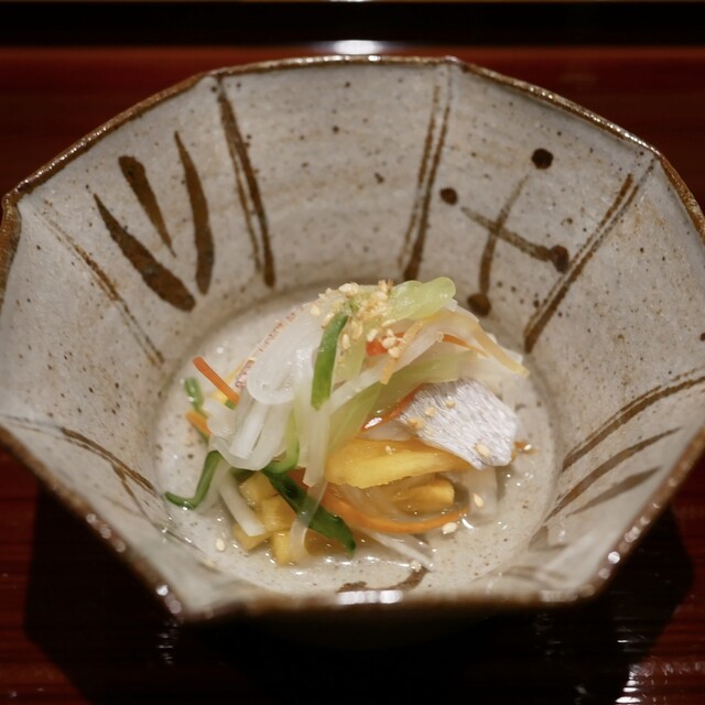 季節の移ろいを映し出す美しい日本料理をご提供。名だたる店で腕を磨いた店主が、丹精込めて作り上げた一皿を五感で存分にお愉しみいただけます。お客様ごとに削り立ての鮪節でひく得意の出汁や十割蕎麦は自慢の逸品。月替わりのコースを地酒とともにご堪能ください。カウンター8席のみの洗練された空間は、上質なひとときを演出。料理人の手さばきを愉しむライブ感とともに、四季折々の味覚と特別な時間をお過ごしいただけます。