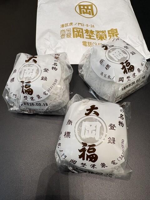 虎ノ門の老舗「岡埜栄泉」さんへ。今回のお目当ては、看板メニューの豆大福(300円)です。