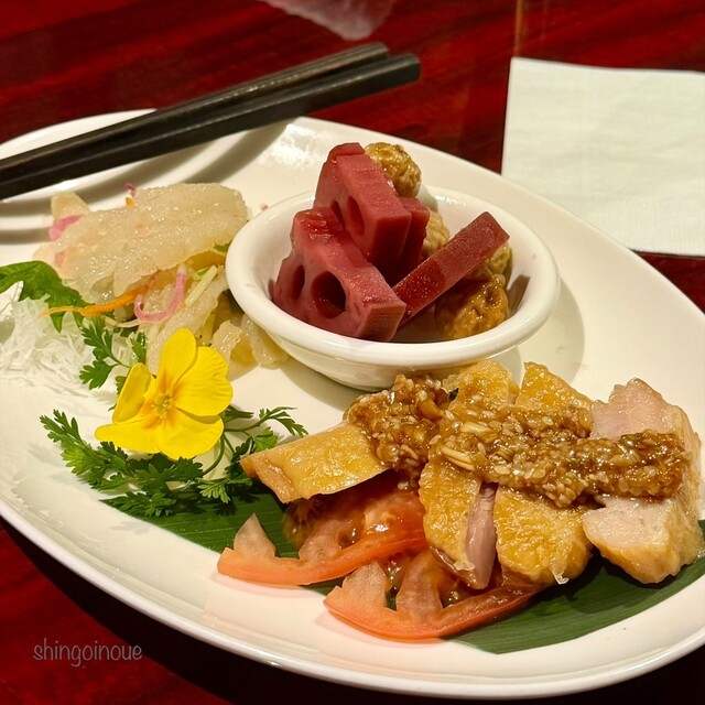 お仕事関係での会食です。知人ですので美味しい食事を囲んで緊張感はなく、お話が弾みました。 こちらはモダンチャイニーズ。 2人だったからか、いわゆる大盛りでクルクル回るテーブルでから取り分けるのではなく、めいめいの盛り付けでサービスされました。 ランチコースは 前菜盛り合わせ 小籠包入り... 詳細を見る