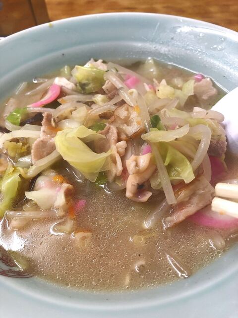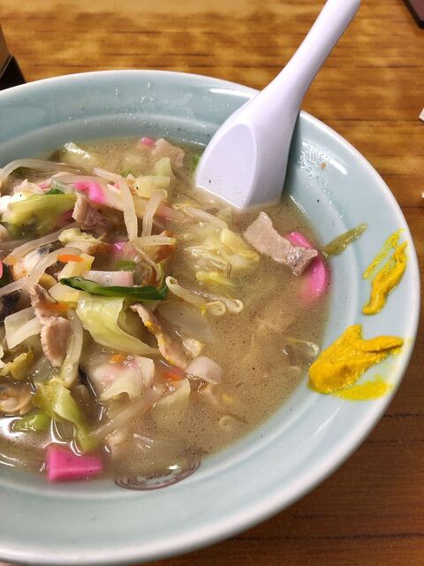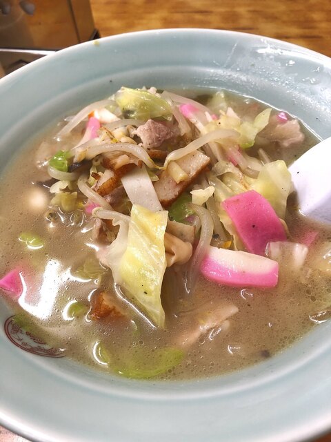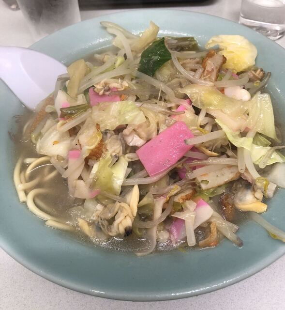 野菜、あさり、いか等の海鮮とピンクの蒲鉾の具沢山のちゃんぽんスープ。 この店は炒めちゃんぽんでは無いので、煮込まれてトロトロな感じです。 少し食べてから味変を愉しむ為に、此... 続きを読む»