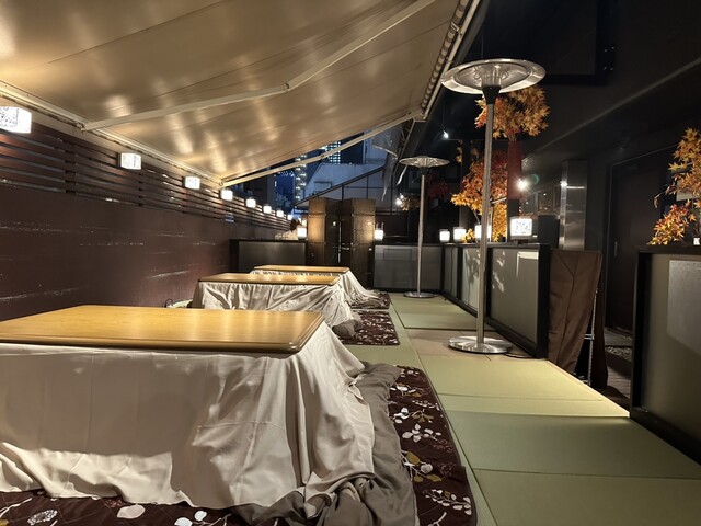 寒い季節に大人気!冬鍋コース!! コタツ・鍋・ヒーターと温まること間違いなし♪ 雨天時にはルーフが降りますので天候や寒さを気にせずお楽しみいただけます! 国産のプリプリなモツとピリ辛で美味しいチゲで暖まりながらお酒をご一緒にご堪能下さい!!