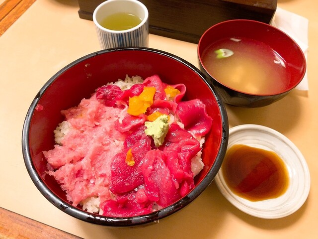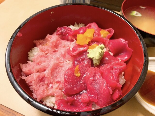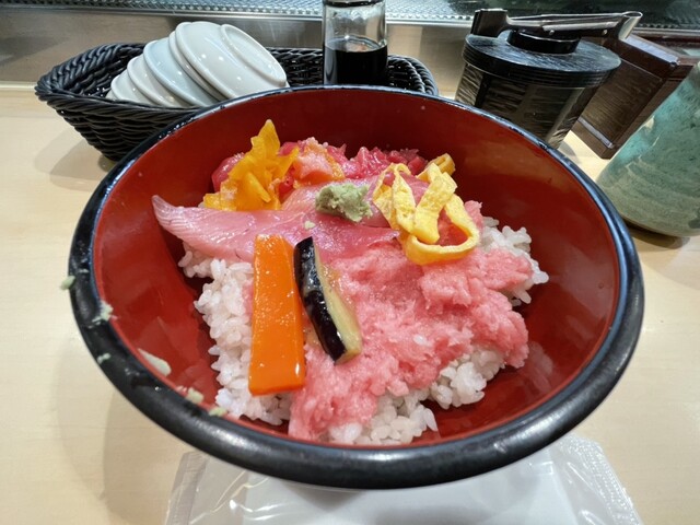 平日11時40分。まだまだお店は空いてますが、一人客のためカウンターに奥から詰めて座るように誘導されます。レビューワーさんたちのコメントを見て、この日は鉄火丼1,020円を注文。