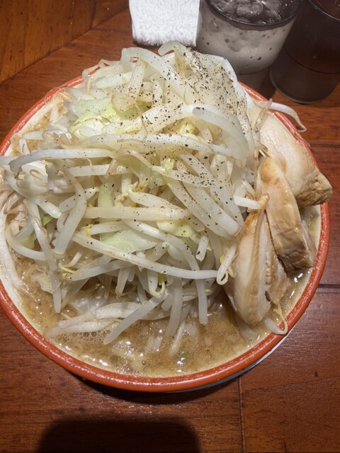 ラーメンだと多いので小ラーメン(豚3枚)を購入、プラスチックの食券が出てきました。カウンターに置いて水を撮りに行き戻って座席に「好みは食券を置いた時に笑顔で伝えてね」って書いてありました^ ^;