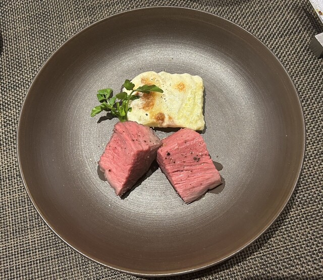 牡蠣の話は事前にしていたが、コースの飛騨牛を見られて、大変喜ばれた。日本一お好きだとか。実際に選び抜かれた部位の仕上がりにも感動されていた。ヒントは赤身。