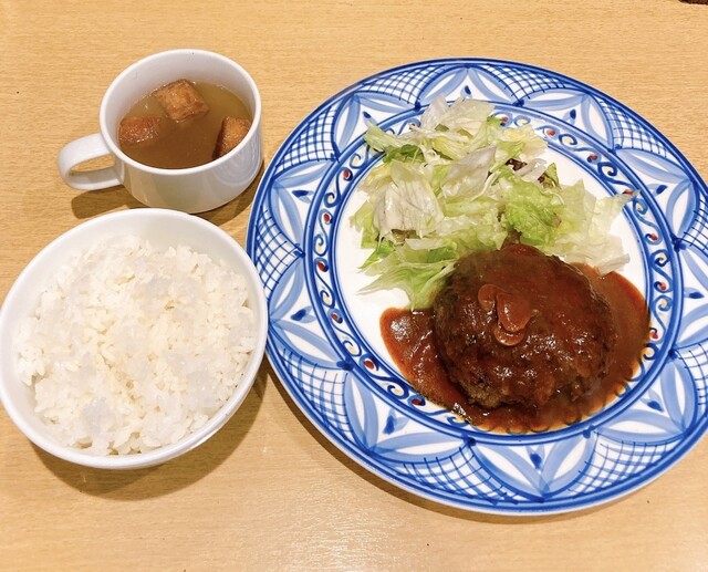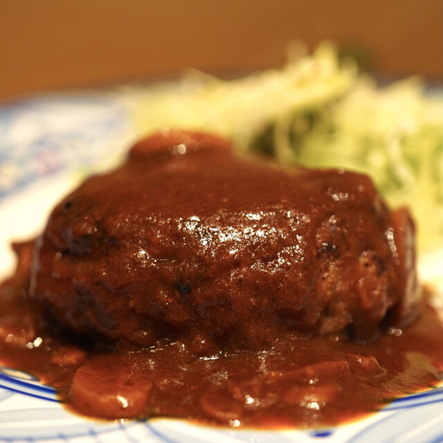 プレートの上には、黒毛和牛100%ハンバーグステーキ・サラダ。