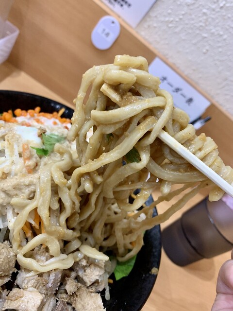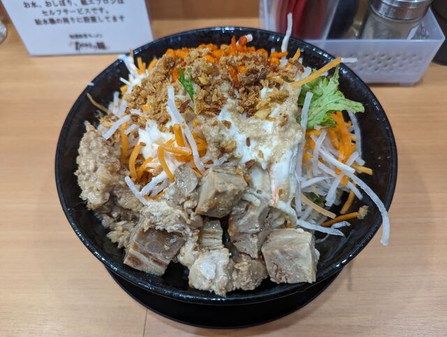 しばしば訪問しているこちらのお店。メニューも一巡してスタンダードのイザナミノ麺。デフォが200gから150gになったようですね。入口の券売機でポチッとしてカウンターへ。カスタマイズ... 詳細を見る