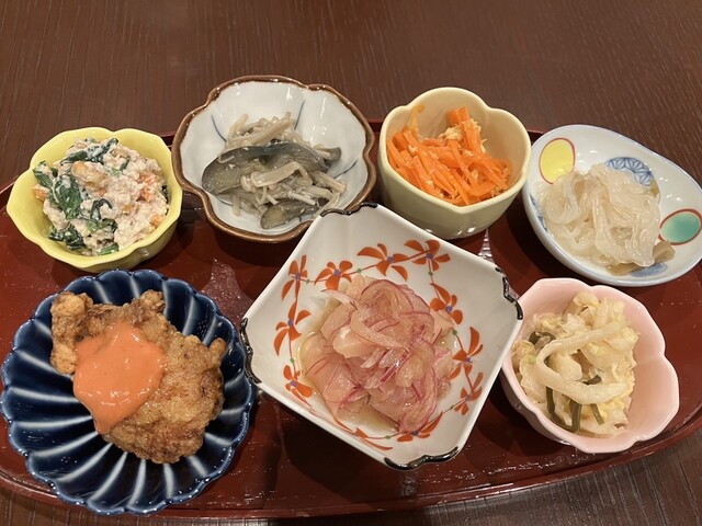 おばんざいプレート(2000円)をはじめに必ずお出しさせていただいております。