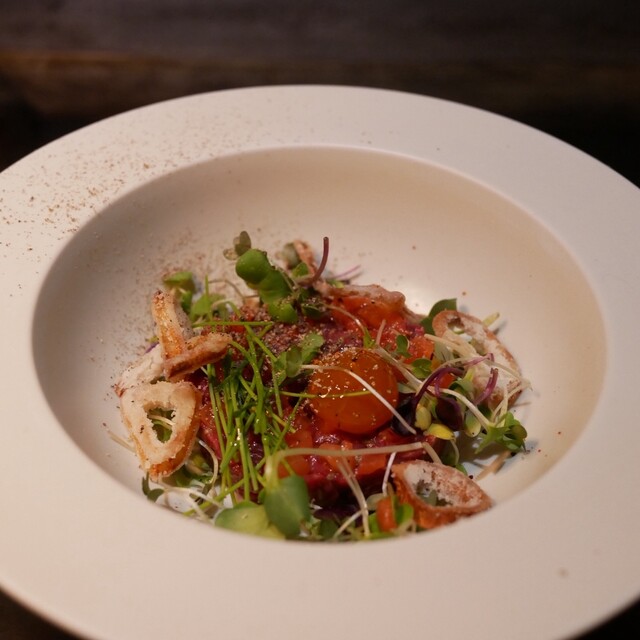 ここはその日入った良質な素材をどこまで美味しくできるのかをラボのように追求するレストラン。日々変わる“お品書き”の中から、お客さまそれぞれが、お腹の空き具合やお好みに合わせてオートクチュールでコースを組み立てていただけるよう、メニューはアラカルト形式でご用意しています。