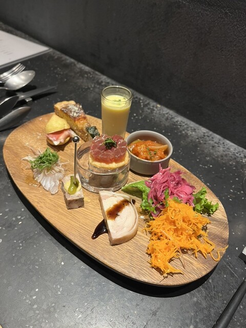 料理は「シェフのおまかせ前菜盛り合わせ(2...