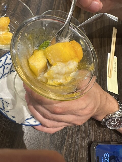 マイルドなカレーソースと殻ごと食べられるソフトシェルは相性が抜群。メインのパイナップルチャーハンは南国感を感じさせる一品。 本日のデザートをメッセージ付きプレートに無料で変更できます。 ご予算、フードのリクエスト等に応じてカスタムコース承りまります。 メニューにない料理、ドリンク等ご対応させて頂きますのでお気軽にお問い合わせくださいませ。