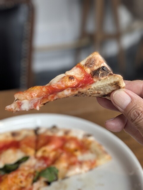 自慢のピッツァは数種類の小麦粉をブレンドし温度管理された専用のセラーで低温長時間熟成し500℃で一気に焼き上げることで香り、食感ともに癖になる味となってます