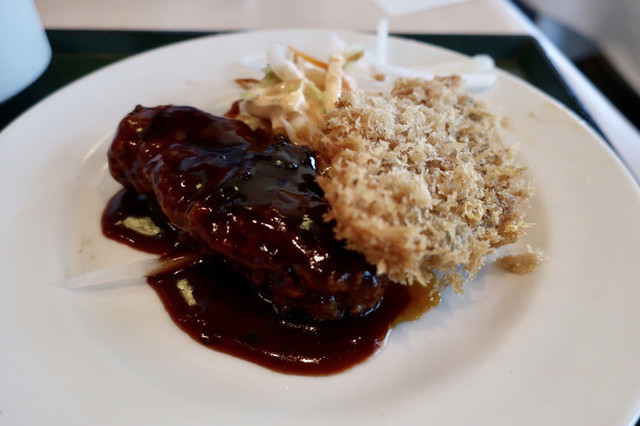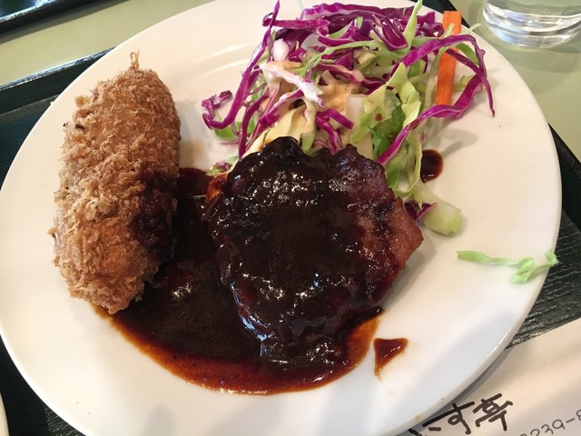 平日11:55に行きました。 すんなり入店。 1人客が多かったです。 注文したのは、 煮込みハンバーグといずれか一品で、 ビーフコロッケにしました。 5分程で食... 続きを読む»