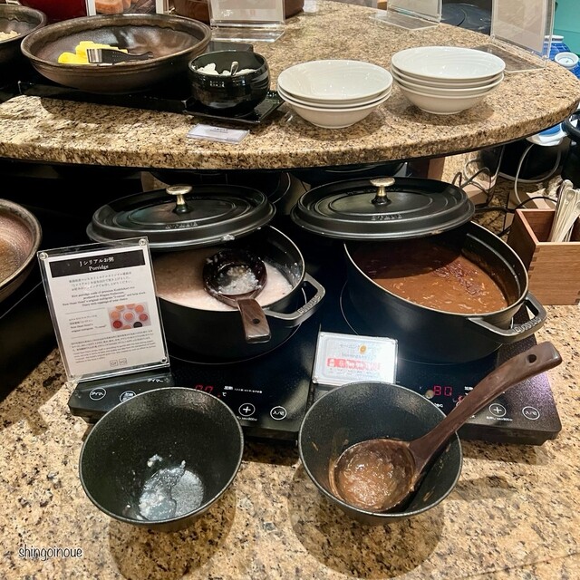 ホテルニューオータニに宿泊。こちらに宿泊した時は、やはり朝食は”最強の朝食”のSAKURAのモーニングビュッフェ。6時30分開店で、日曜日の6時に到着。代表待ちしている人が1人いました。いつもは、かけ放題のいくらの醤油漬けをご飯にいっぱいかけて頂くのですが、今回おにぎりがありましたので、そちらを頂く事にしました。一回に2個おにぎりを注文出来、具材は、焼鮭、梅干し、野沢菜信州味噌、さんま柚子胡椒風味...