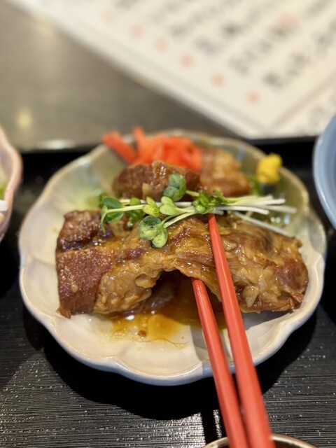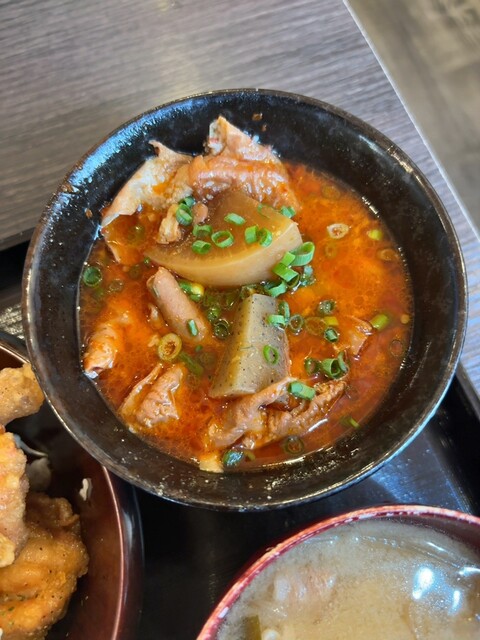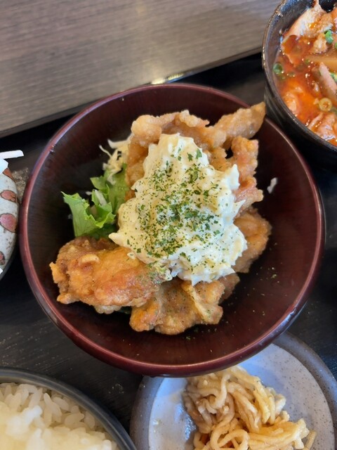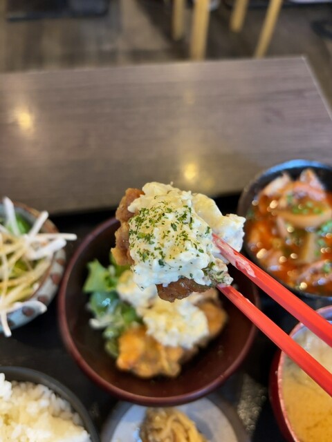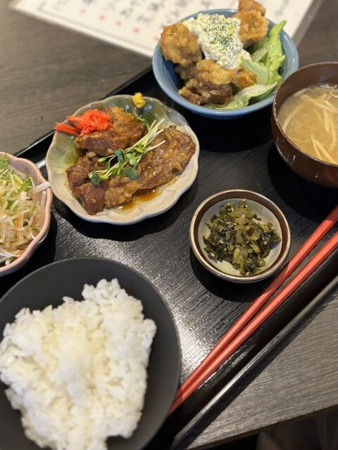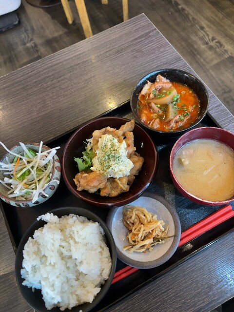 ▼いただいたメニュー てげてげ定食 ¥1,100 ・豚しゃぶ(ピリ辛) ・坦々煮込み 〉〉お店の雰囲気 入り口が少しわかりにくいが、少し年季の入ったような木造の扉にラ... 詳細を見る