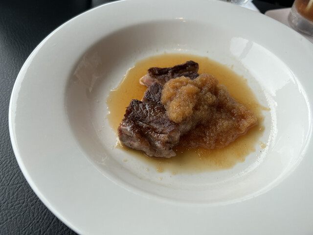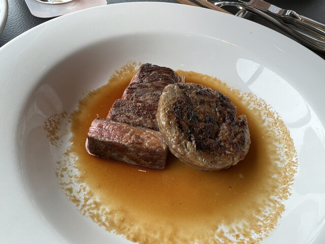 国産牛のステーキはミディアムレアでめちゃくちゃジューシー。とても美味しい。ブッフェで食べられるようなお肉ではありませんw