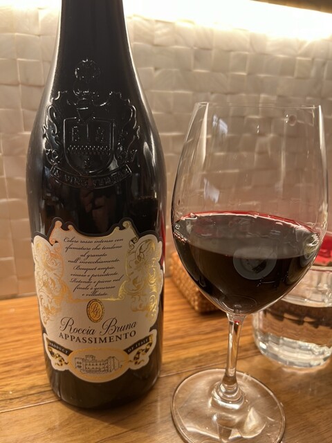 イタリアのプーリアと言ったら、黒いワインのネグロアマーロですが、こちらはメルローとのブレンド。グラタンに合わせた頂きました。控えめでまろやかで飲みやすかった。