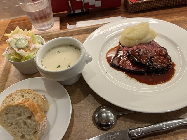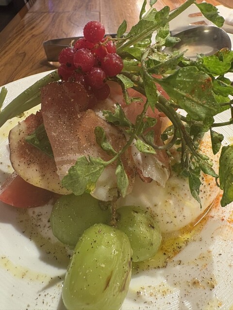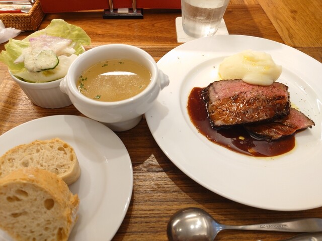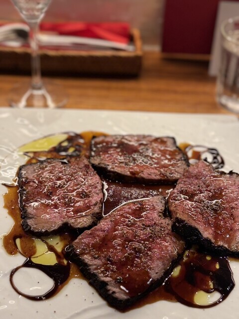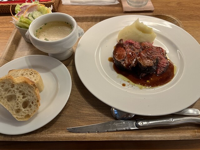 ネーミングが素敵なビストロ。お肉と前菜とスープ、厚切りカルパッチョ...美味