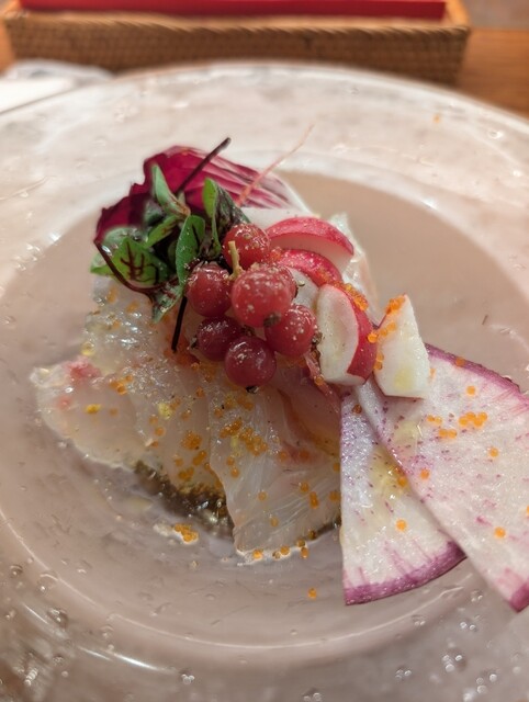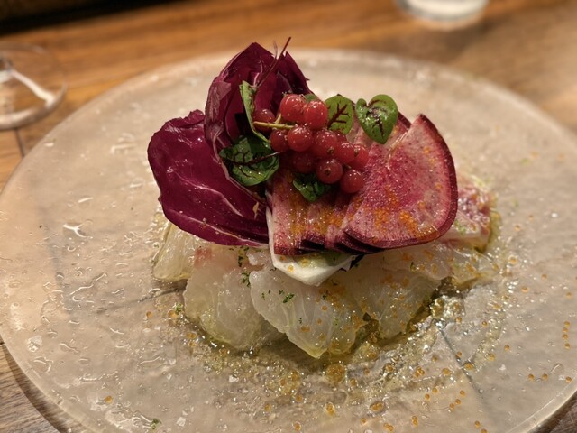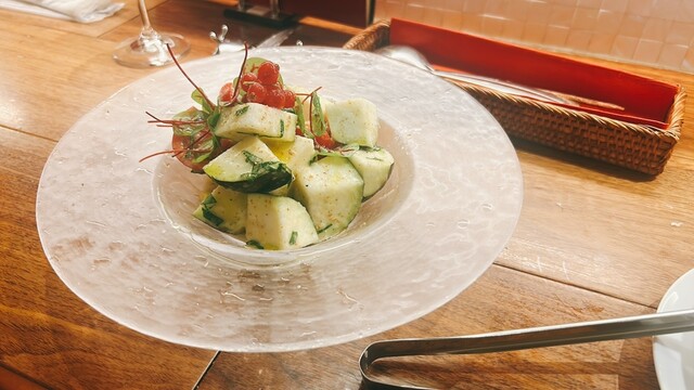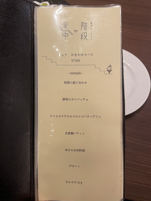 久しぶりの階段の途中さん。今日も満席です。メニューにおまかせコースにワインペアリングメニューがありました。予約なしでもオーダーできるみたいです。5品+5杯。とても魅力的だけど酔っぱらい確定なので、ソム...