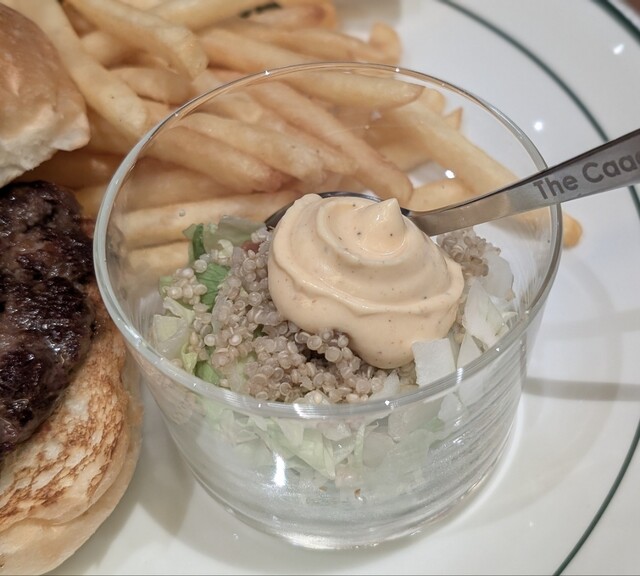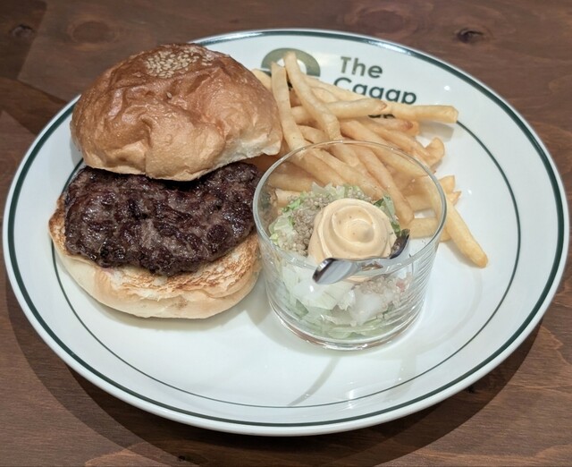 食べ応えアリ!サラダ付きのビーフ100%バーガー