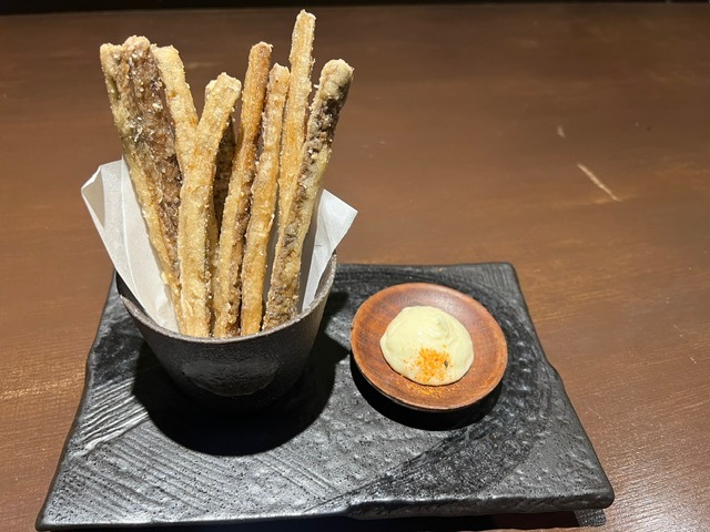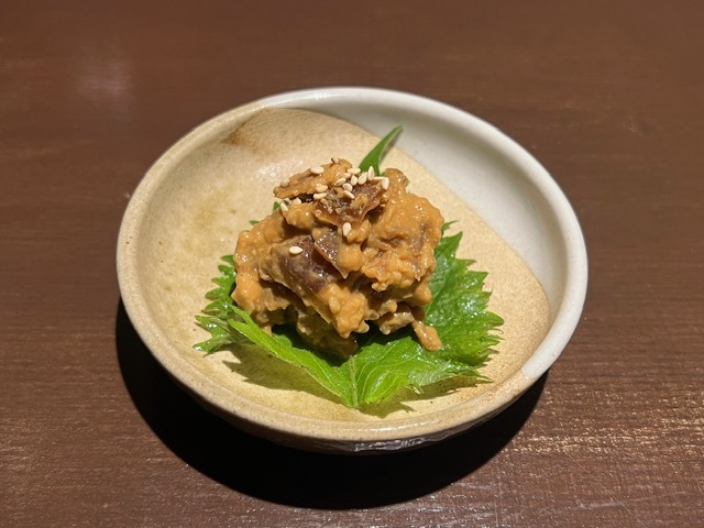 つまみ類は、味噌しゃもじ、刺身、豚角煮のフライ、イカ一夜干しなどと、締めに味噌焼きおにぎり、味噌汁。