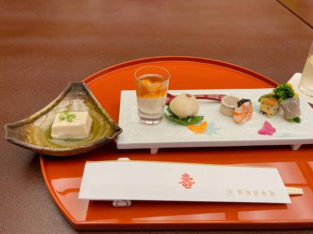 先日家族のお祝い事で利用しました。 日頃懐石料理は行かないのでちょっと緊張してしまいましたが、楽しいひと時を過ごすことが出来ました。 全員が集合する前に明治記念館の中庭... 詳細を見る
