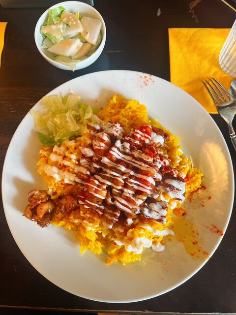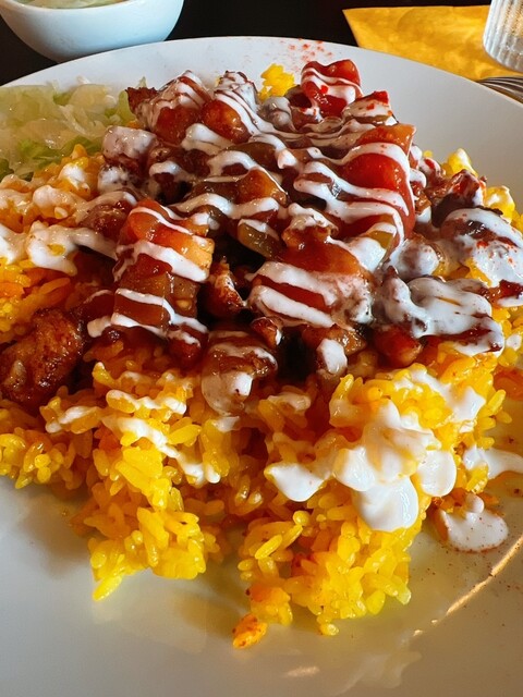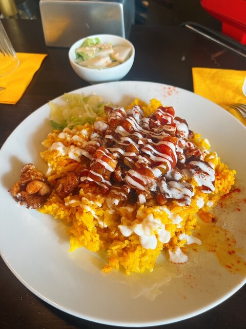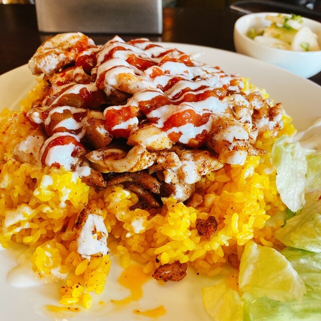 チキンオーバーライス(サラダ、ドリンク付)1200円。 ニューヨークのキッチンカーがはじまりと言われるチキンオーバーライスはこちらのお店が初体験でしたが、 ... 詳細を見る