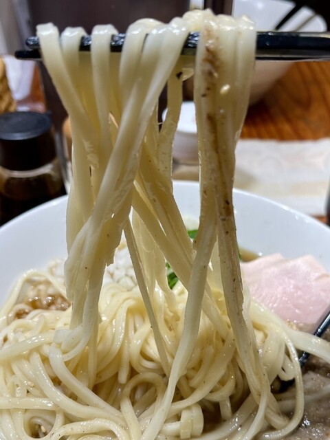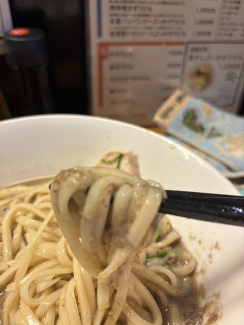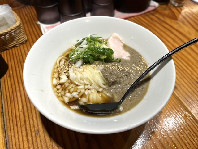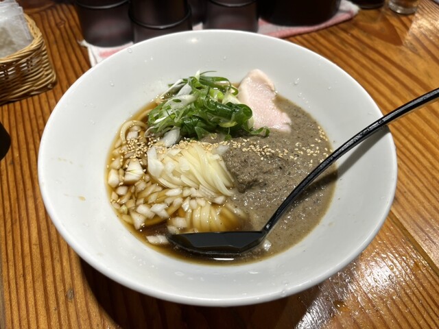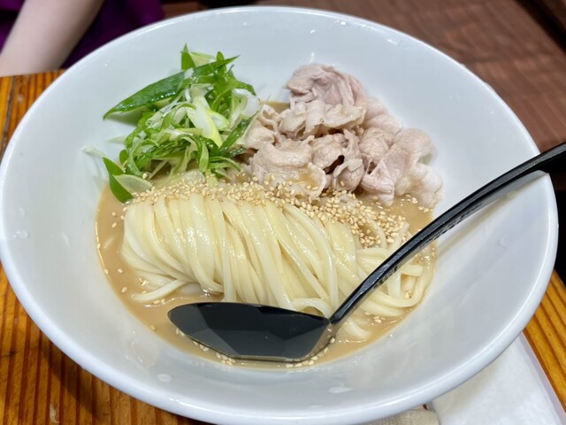 評判を聞きつけて初訪。開店の10分前着でポールゲット‼️後客は開店後に5。お店の名物「煮干しぶっかけうどん」大盛をオーダー。自家製の煮干しのペーストに覆われた丼は、煮干し好きの自分には堪らない見た目で食べる前から期待が膨らむ。まずスープからひと口。甘めのつゆに、この煮干しの旨味が溶け込んでおり、その... 詳細を見る