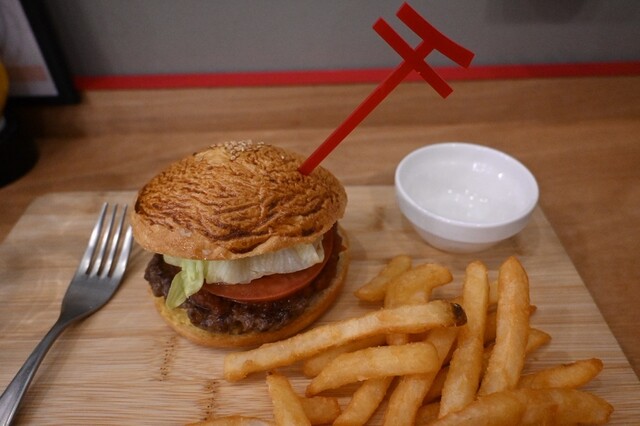 注文は券売機スタイルで、先に決済を済ませるシステム。今回は看板メニューの**「アンフォラバーガー」**をオーダーしました。