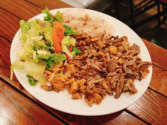 最高の料理というのは、日持ちのする家庭料理だったりする。トマトソースで煮込んだナスのボリュームたっぷりの丼は、ご飯との相性抜群。正直なところ、ご飯のおかわりが欲しくなるくらいだが、テーブルにあるチリパウダーを使えば、いつでも提案できる。