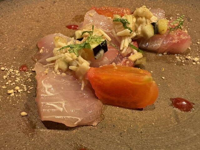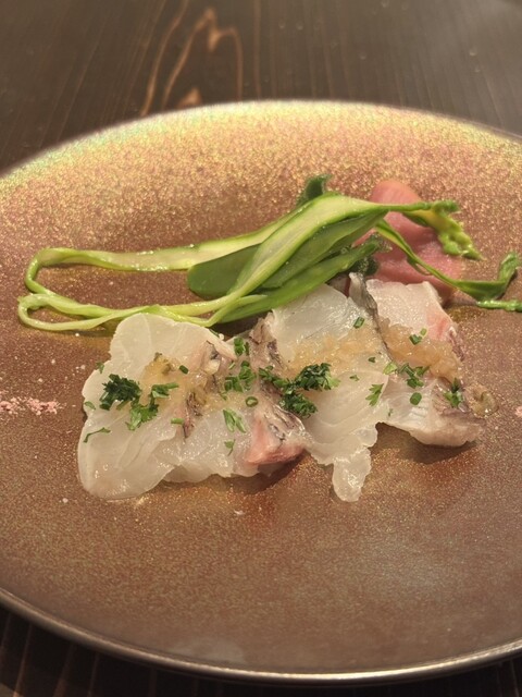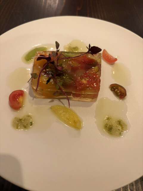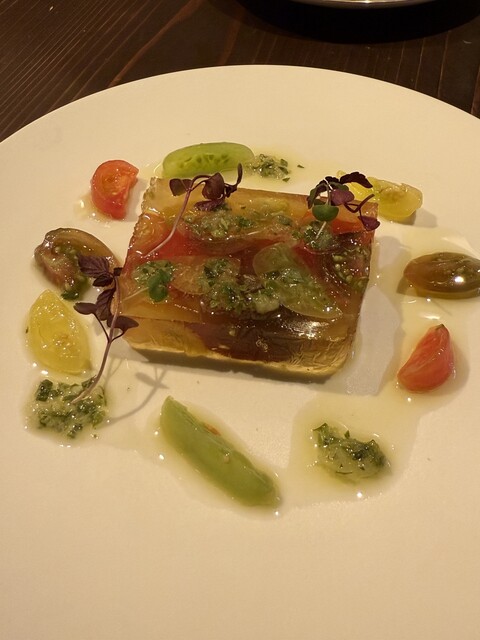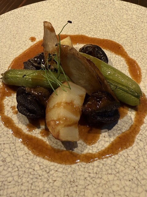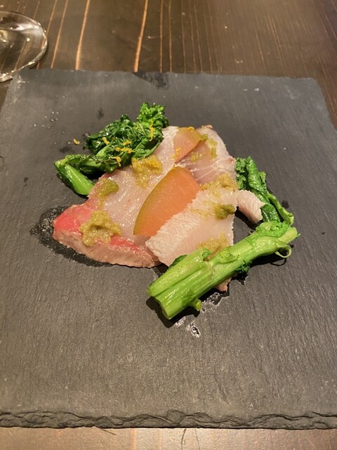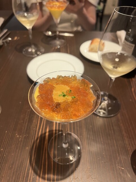 お洒落な雰囲気の中、料理、ワインともに明確な意思に基づき、素材から調理法に至るまで厳選され、美味しさは当然のこと、その上に個性がひかり秀逸です。思わずフランスを拠点にワールドワイドに味覚や思念が広がる...