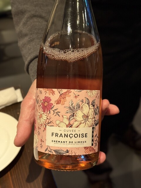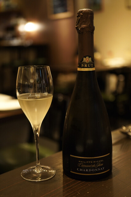 料理はコース。4人だったのでボトルで泡と白をお願いしたが、