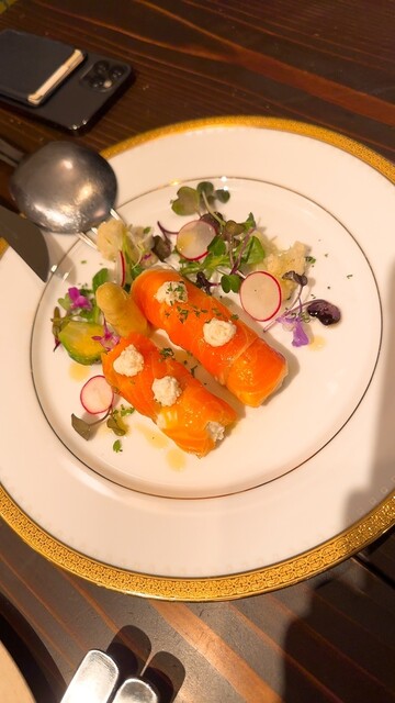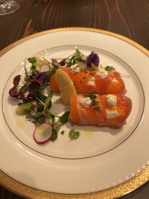 知人の還暦祝い。地下の奥にある隠れ家です。とてもお世話になった方なので奮発しました。プリフィクスのメニューは魚中心、肉のメインはウクライナ風カツレツです。アミューズから追加のデザート、チーズまでオリジ...