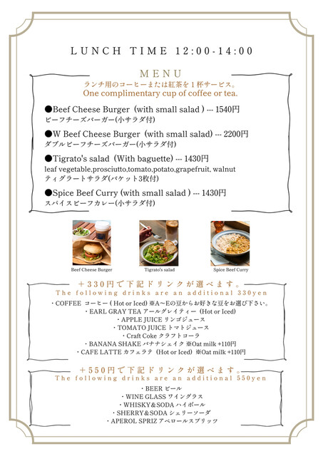 | ドリンク | カクテルあり、カクテルにこだわる |