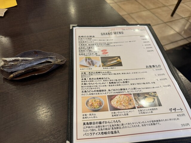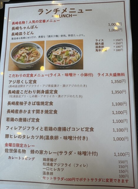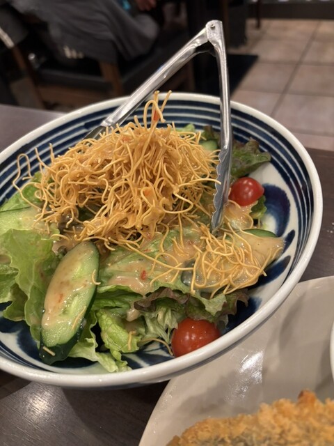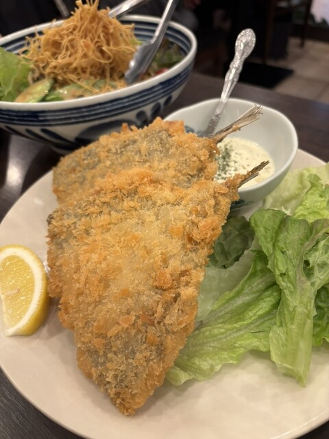 美味しい長崎のアジフライ目当てに訪問。とはいえ、長崎らしい「ハトシ」「皿うどんサラダ」などもメニューにあり、迷いなく注文。