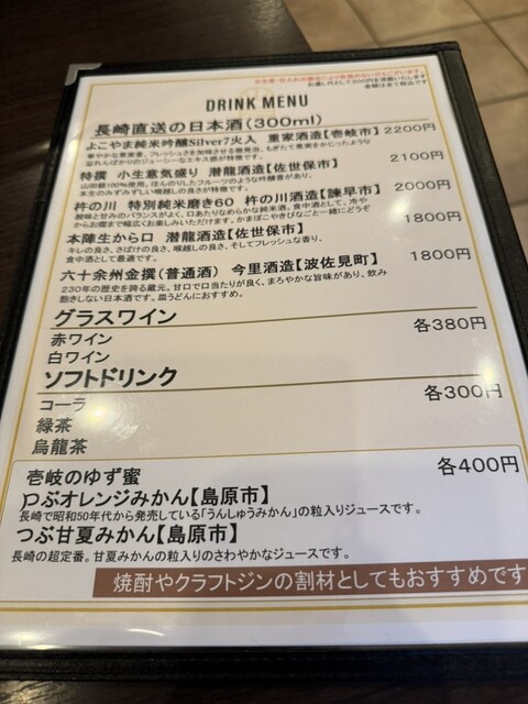 | ドリンク | 日本酒あり、焼酎あり、ワインあり、日本酒にこだわる、焼酎にこだわる |