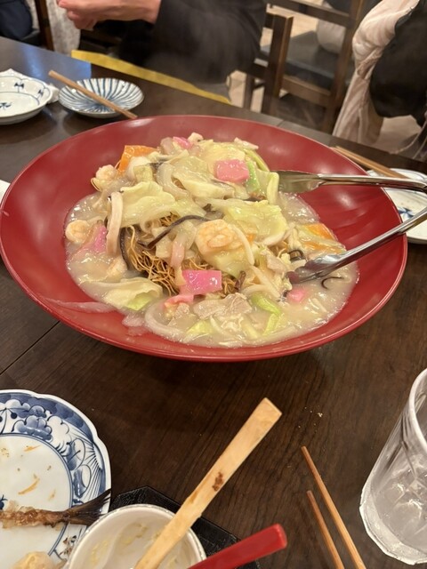 料理は普通に美味しかったです。ちゃんぽんは人数が多いからか結構でかい器に入ってきてインパ...