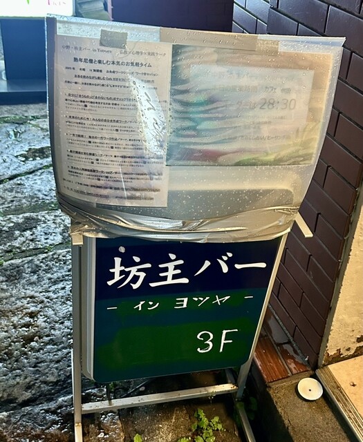 前職の同僚とこうやのラーメンたらふくたべて腹がくちくなったところで、もう一軒と四谷三丁目の有名店「坊主バー」に案内する。「本物のお坊さんがやってるバーで…」「???」。説明したが頭が追いつかないようで、百聞は一見にしかずと無理やり連れ込む。バーは四谷荒木町の路地裏の雑居ビルの2階。入り口の階段から既... 詳細を見る