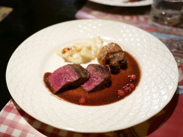 ペルドロー・ルージュ(赤茶山鶉)をいただきに平日の夜、訪問。 大通りから路地に入った、ビルの奥まった所にあるビストロ。 桐原オーナーシェフと奥さんの2人体制。 ◆前菜・エスカルゴ「つるやスタイル」。 エスカルゴのバター香草ニンニク焼きを焼き鳥のように串に刺してあって 上には生クリー... 詳細を見る