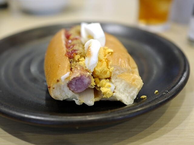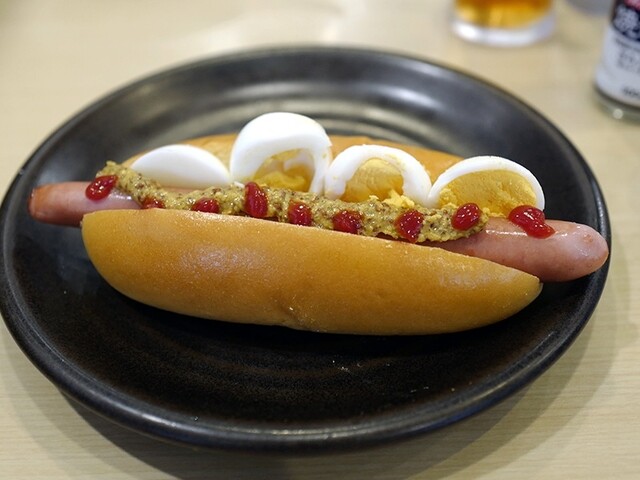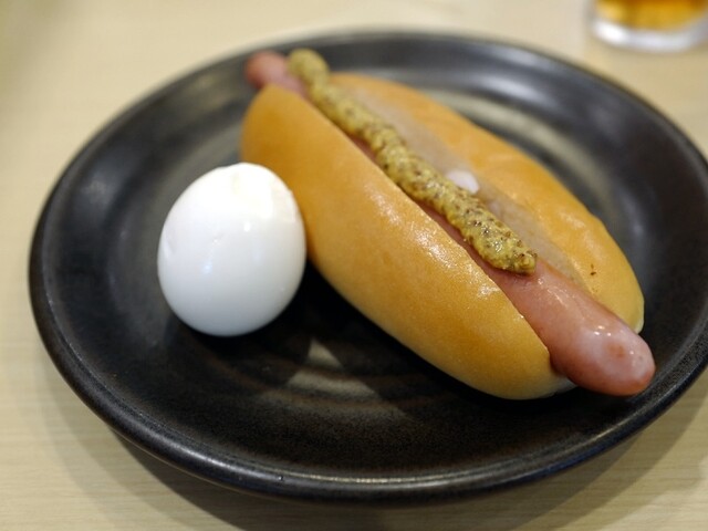 たまごドッグやあんこのホットドッグなんかもあるも、やはり普通のプレーンドッグ。ただそれだけでは心許なくゆで卵を追加して、野菜も食べなきゃとミニグリー...