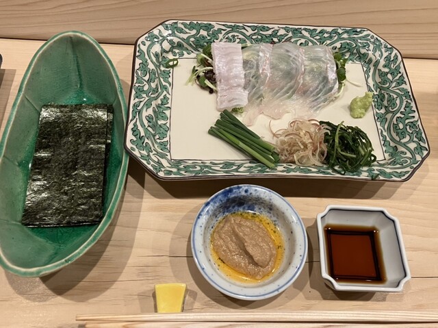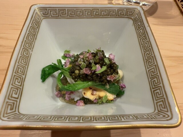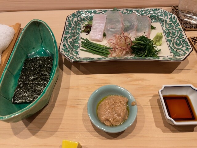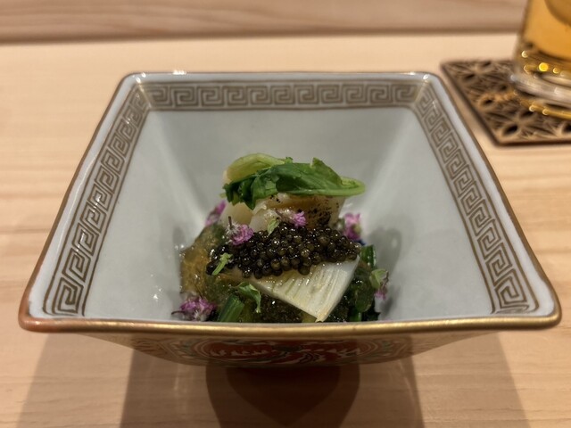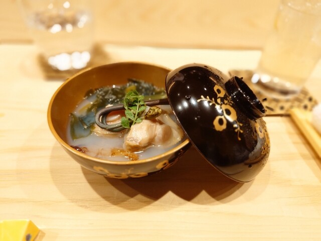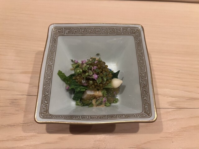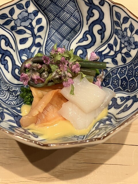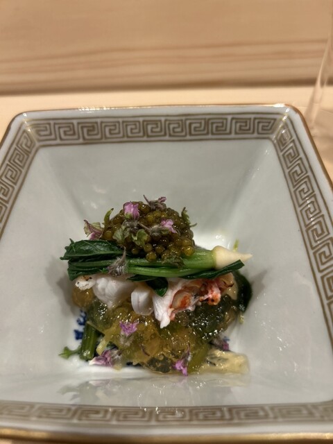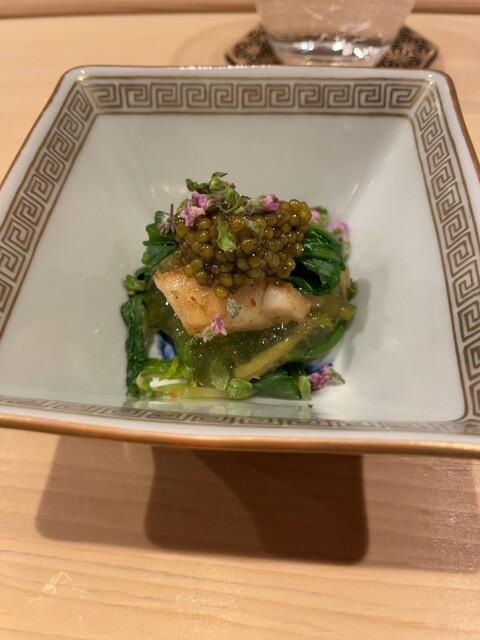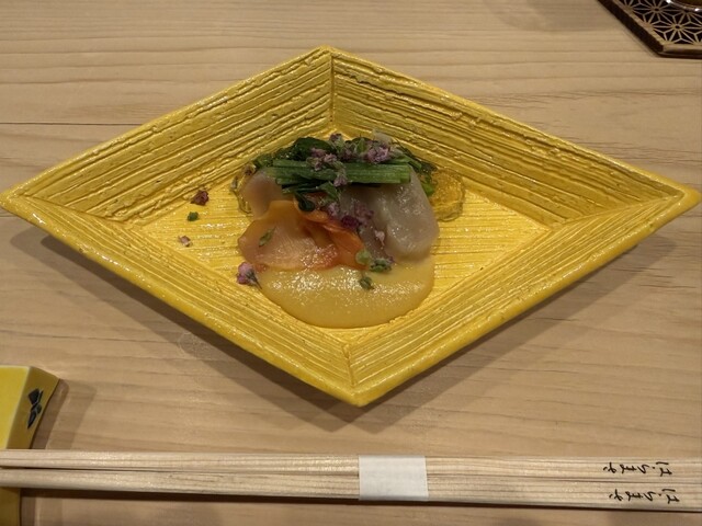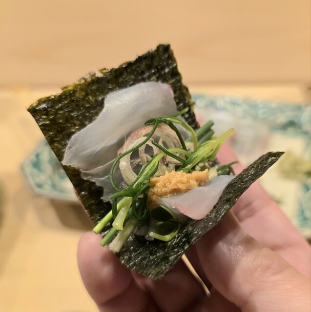 また、ヒラメと野菜を包み、鮟肝を乗せる「手巻き」は独創性もあり美味。わさびや茗荷も、優しい味わいに仕立てられていました。